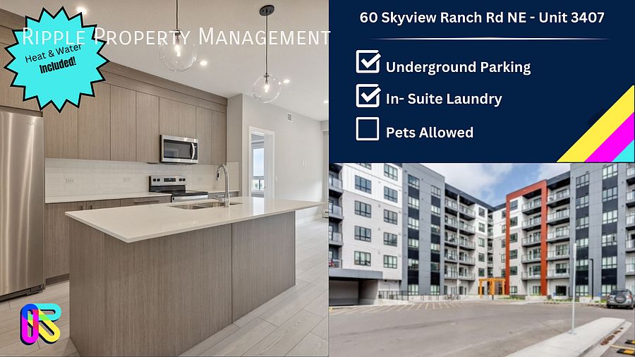 AMAZING 2 BEDS+DEN/ 2 BATHS CONDO WITH UNDERGROUND PARKING! Interested in this unit? Our automated booking system called ShowMojo will contact you within a few hours with possible showing times and dates. NOTE: Showings are in a group and not One on One INFORMATION: - Utilities Included: Heat & Water - Utilities NOT Included: Electricity, Internet & Cable - Parking: Underground Parking - Pets: No Pets Allowed - Smoking: Non-Smoking - Storage Included: No UNIT FEATURES: - Den for extra storage/ office space - Open concept kitchen with all appliances - Large living room with access to balcony - Main bedroom featuring walk-in closet and full bathroom - Secondary bedroom with window and closet - Balcony - In- suite laundry - Window coverings COMMUNITY FEATURES: Walking distance from shopping & groceries, tennis courts, located near bus & train, park, short distance to bike paths, river & playgrounds This property is professionally managed by Ripple Property Management (Powered by RE/MAX Commercial Properties) View more properties by Ripple Property Management.