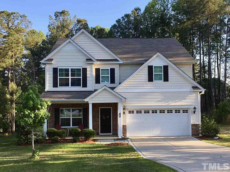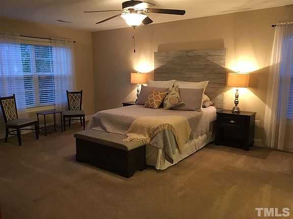 GREAT LOCATION! Sits in a wonderful, wooded, quiet cul de sac 15 min from Fort Bragg. Features 10 ft ceilings, giving wide open feel throughout. 1st floor features hardwood floors in entry hallway, vinyl flooring in kitchen, & carpet in the spacious living room. Kitchen, living room, & eat in kitchen are "open concept" & off the kitchen is a formal dining area. Kitchen w/ granite counter tops & SS appliances. Carpeted 2nd FL includes a generous sized bonus rm & bedrooms. New paver patio!