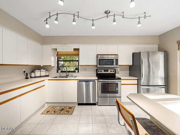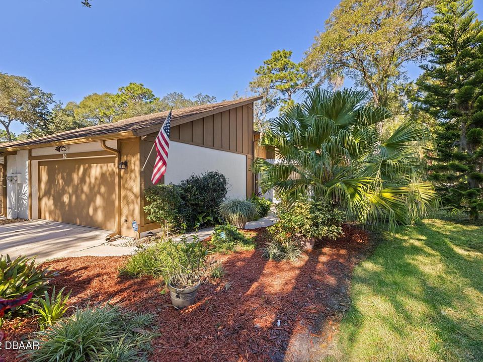 HIGH & BEST OFFERS DUE THURS 5pm Desirable TRAILS 2bed/2bath single story end unit townhome in ORMOND BEACH. Interior features -split bedroom plan, light & bright eat in kitchen featuring new lighting w/built in table & storage, stainless appliances, living room w/fireplace, open to formal dining area ,and inside laundry. Enclosed Florida room provides extra living space -could be family room or office. Main bedroom has large walk in closet & newer sliding glass door. Guest bedroom is private & adjacent to full bathroom. Exterior features- privacy fenced patio, lush landscaping, hurricane shutters, 2 car garage with plenty of storage. Block construction. Community features- pool, clubhouse, walk/bike paths. Near shopping, medical, airport, racetrack, houses of worship &BEACH!