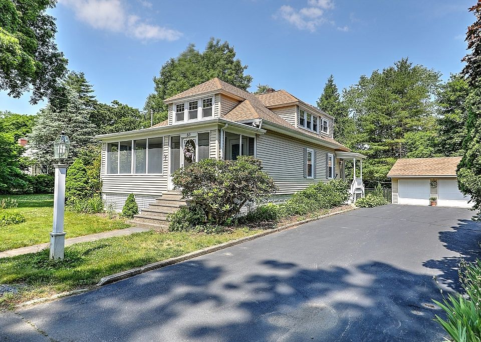 Welcome to 60 Steere Street, a charming bungalow that has been lovingly maintained by the same family since it was built, on a beautiful wooded lot with over half an acre of land! Tastefully updated with a functional layout, this home encompasses all of the charm of its early days with all of the conveniences of today. Admire gleaming hardwood floors, custom built ins, gorgeous original doors, crown molding, and so much more. The first floor offers an eat in kitchen, full bathroom, formal dining room, living room, and first floor laundry! The second floor features three bedrooms and a second full bathroom. Enjoy summer nights on screened in front porch, or dine al fresco on the back deck overlooking a private, wooded backyard. The detached two car garage offers ample storage, parking, or workspace. Never worry about unpredictable New England weather with an automatic, standby generator. This one will not last!