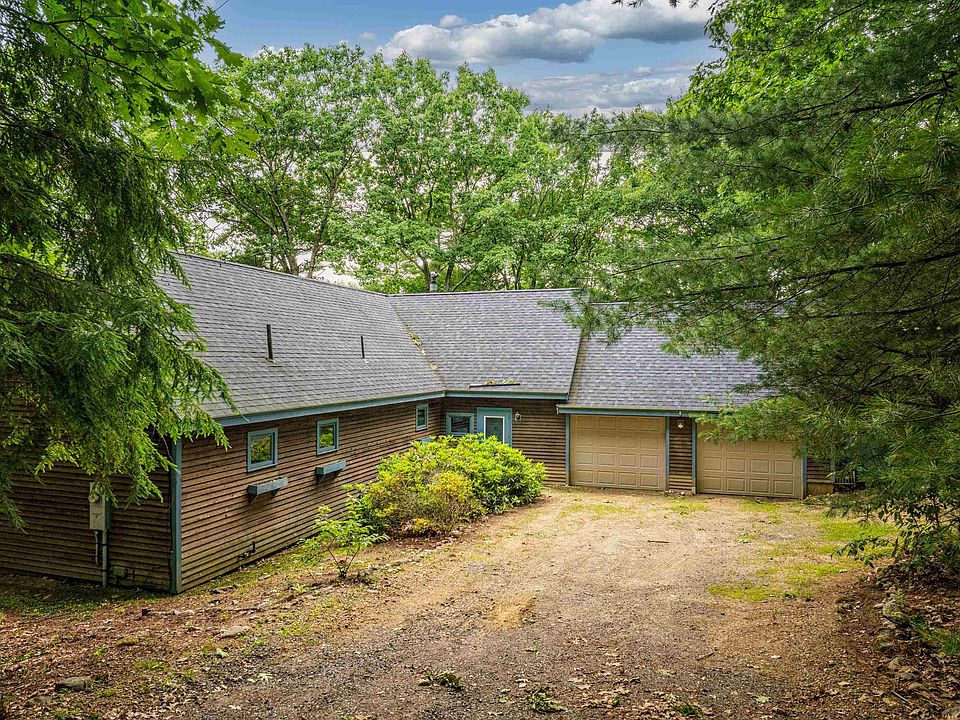 Let wildlife be your closest neighbor with this c. 1985 custom designed Post and Beam woodland retreat, situated on 7.7 acres of forested land on one of Nottingham, NH’s designated Scenic Roads. The floorplan is wide open, both spatially and to nature, with expansive cathedral living/dining spaces, natural woodwork, and floor to ceiling windows that bring the outdoors in. This home's architectural appeal provides an excellent opportunity for customization. Currently 2 bedrooms and 2 bathrooms, it also boasts a large, vaulted Loft area that could be transformed into additional bedroom(s)/living space. Amenities include an attached 2-car garage, a 12x13 bonus room off the entry, and a large screen porch overlooking the yard and woods. Home, Septic, and Water Quality have all been pre-inspected and reports are available. Property is an estate sale and being sold AS IS. This home offers incredible potential for those wanting high quality construction, a sense of space and serenity, and the inclination to cosmetically refresh this Post and Beam gem. Don't miss the opportunity to make this unique property your own!
