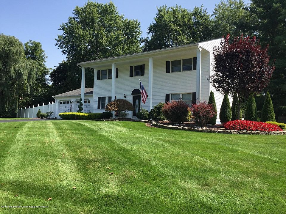Meticulously maintained & fully renovated 4 BR, 2.5 Bath Bryant Colonial. Situated on beautiful wooded lot. Formal Living, Dining Room and updated Eat-In Kitchen with Bay Windows, Stainless Appliances, porcelain tile floor. Oak Hardwood Floors, Recessed Lighting, Crown & Colonial Moldings throughout, updated Bathrooms w/ceramic tile & Custom Vanities. Large Finished Basement. Private wooded Backyard, 25'x20'Deck & Shed. Attached 2 Car Garage. Vinyl Siding, Anderson Windows, new High Efficiency Furnace, Central A/C System, Water Heater, & Roofing. Generac Standby Generator, Hunter Sprinkler system & Central Station Alarm w/Video Surveillance. Easy access to all amenities Freehold & Monmouth County have to offer - Pool Club, Great Schools, Shopping, Parks, NYC Bus Transportation, Rte.9 & 33.