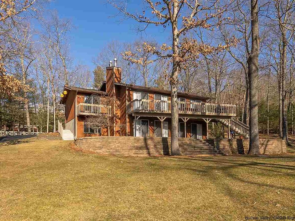 Built on a hillside, this California Ranch has a lot to offer.... Immaculately maintained and move-in condition, this house is perfect for the empty nester or a growing family. This open floor plan layout consists of a large Living Room with gas fireplace, dining area, smartly designed Gourmet kitchen with a plethora of maple cabinets and ample counter space featuring granite countertops, backsplash and under cabinet lighting!!! Tiger wood floors, recessed lighting, and an entire wall of sliding doors lead you outside to a large deck overlooking the professionally landscaped backyard!!! To the right of the wide foyer is a bedroom that includes an en-suite bathroom and a balcony to enjoy your morning coffee. On the same level you have a laundry room and a half-bath which lead out to an oversized 2-car garage (approx. 524 sq. ft.) On the lower level of the house is the master bedroom, fireplace, walk-in closet, an office and a whole wall of sliding doors ( same as in on the first floor). Also featured are 2 additional bedrooms and a designer bathroom. Professionally designed, the landscaped outside area includes a 2-tiered stone retaining wall, lots of plants, seasonal perennials, designed stone patio running the length of the house with seasonal mountain views. For the dog owners, there is an invisible fence all around the property. Country living with city conveniences nearby. Great location: As for the New Yorker within 3 miles of the NYS Throughway and in a 1.5 hour drive to the city. Minutes to highly sought-after Uptown Kingston ,Trailways Station, Rondout area and parks. Pride of Ownership!!