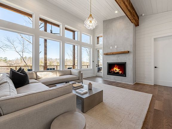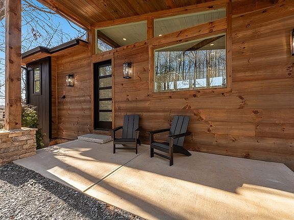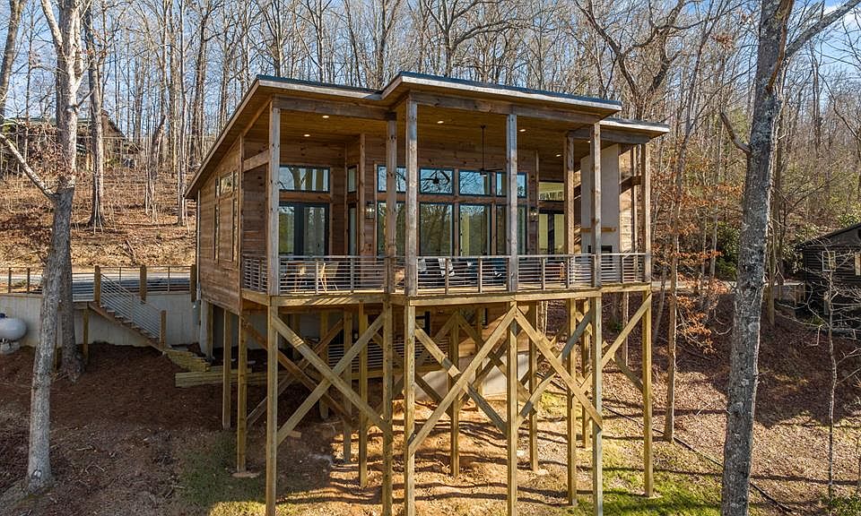 This is the mountain lifestyle reimagined! Walls of glass w/ all-day natural light and gorgeous dusk views create the WOW factor that can't be beat. New construction contemporary treehouse less than five minutes to Downtown Blue Ridge and Lake Blue Ridge is complete with two bedroom suites on the main and a detached lower level with bunk room and bath. Natural stone countertops, gourmet kitchen, cathedral wood ceilings, concrete fireplace on the interior and on the sprawling outdoor deck, massive walk-in tile showers with integrated rain heads, walk-in closets, and designer lighting throughout. Sold fully-furnished, this home won't last long. Call today!