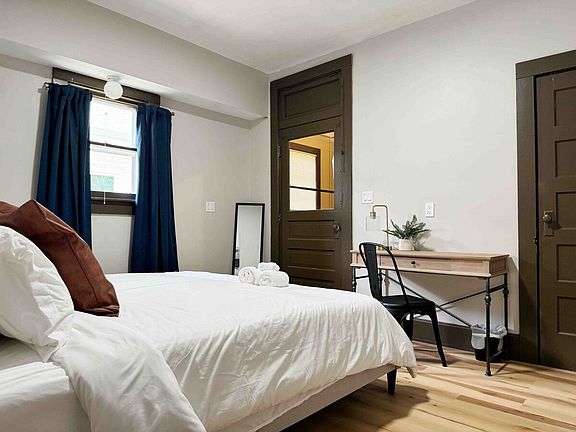 Enjoy this stylish and fully renovated 1-bedroom, 1-bathroom apartment in close proximity to Evansville's Art District (Haynie's Corner) and Downtown EVV, perfect for a weekend escape or a longer stay. This main floor apartment is part of a duplex home. Designed with you in mind, this apartment offers a king-size bed for ultimate comfort, a smart TV in the living room, and a stocked kitchen for easy meal prep. It also includes a washer and dryer in the unit. Free street parking is available for your convenience. Located near local art, dining, and attractions, this fabulous location offers easy access to Evansville's vibrant Art District and Downtown EVV. Guests have access to the entire apartment.
