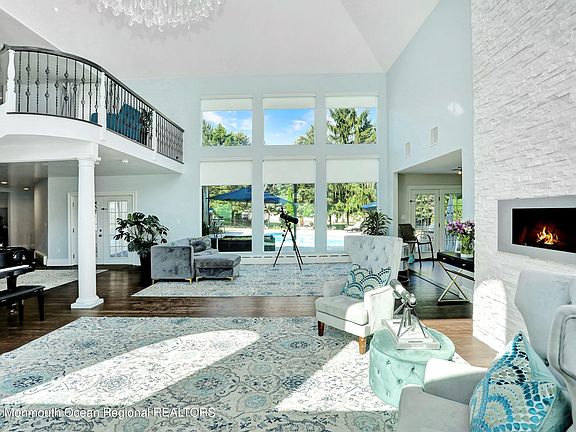 Perfectly located in Holmdel is a stunning custom-built home with 7,000 square feet of living space. Resort-like backyard is ideal for entertaining. The home features a sophisticated & spacious open concept floor plan with 5 oversized bedrooms, 5 bathrooms and a 3-car garage. Captivating entryway with panoramic windows which bring in plenty of natural sunlight. Endless features include a grand staircase, vaulted ceilings, fireplace, rare hardwood flooring, sprawling walk-in closets, recessed lighting, skylights, circular driveway and much more! Home is nestled on 1 acre of level terrain, boasts a heated in-ground pool, pavers, outdoor pavilion, serene backdrop, outdoor counterspace and many amenities. Enjoy the amazing schools, easy commute and close access to shopping and restaurants. Conveniently located within close proximity to iconic Bell Works, MSK, NYC transportation, beautiful iconic parks, Holmdel Pool Club & Jersey Shore beaches.