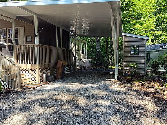 Much sought after 55+ community, rarely available 2-bedroom 2-bath home in Country Meadows, Franklin, NC. 2002 Skyline home with screened in porch, carport and utility shed. Open floor plan, with plenty of windows to see the beautiful views and greenery. Surrounded by leafy trees in summer, winter reveals gorgeous wraparound views of the mountains. Recently painted, new roof 2023, Berber carpeting throughout, vinyl in kitchen and bathrooms, double pane windows. Includes washer/dryer and plenty of storage. Home is located in a friendly, well-maintained, active community with regular potlucks and get togethers in the clubhouse. Franklin NC is just 30 minutes from Highlands, NC and the Great Smoky Mountains. Country Meadows is off Georgia Road, close to downtown, theater, recreation center, shops and restaurants. Property is accessible year round. Dog-friendly (certain restrictions.) Management approval required. Showings by appointment only.