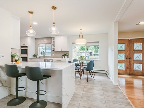 Welcome to this exquisite mid-century modern ranch located in the sought-after Brighton Browncroft neighborhood, Penfield schools. 3 beds, 2 full/1 half baths span 2,570 sq ft. Step through the inviting double front doors into the main foyer that offers a glimpse of the captivating open floor plan. Prepare to be amazed by the recent upgrades, including a state-of-the-art kitchen that was fully remodeled in 2022. This top-of-the-line kitchen boasts designer custom cabinetry, sleek quartz countertops & high-end appliances that will undoubtedly delight the gourmet chef in you. The combined great room/dining room area has a striking wood cathedral ceiling that exudes warmth & character. Imagine cozy evenings gathered around the majestic stone gas fireplace, creating cherished memories. For those seeking a space to relax & unwind all year round, the heated 4-season room is a true gem. Offering panoramic views of the deck & the inviting inground pool, providing a perfect backdrop for both tranquil moments & lively gatherings. This home is the epitome of an entertainer's paradise, providing a seamless blend of indoor and outdoor living spaces. Showings start 9/21, offers due 9/26.