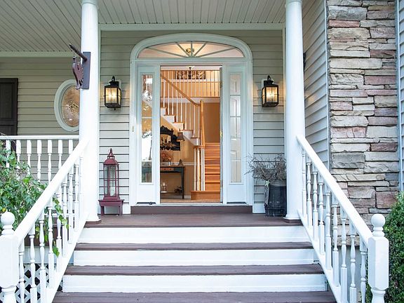 Spectacular country colonial located at the end of a quiet cul-de-sac. Inviting wrap around porch. Hardwood floors, spacious family room with gas fireplace. Huge eat in kitchen with granite counters, stainless steel appliances and a large pantry. Oversized 3 car garage. Upstairs you will find a master bedroom suite with a gas fireplace and spa like bathroom and room for all of your clothes in the ample closets. Additionally there are 2 bedrooms, a den, a bonus room (possible in law set up) and 2 full baths. The basement is finished with a full bath and has sliders to the back yard. Plenty of storage. Beautiful trim and molding package throughout. A pleasure to show!