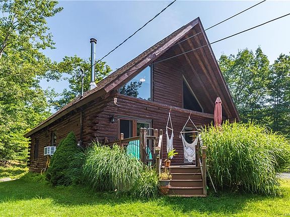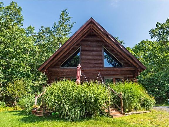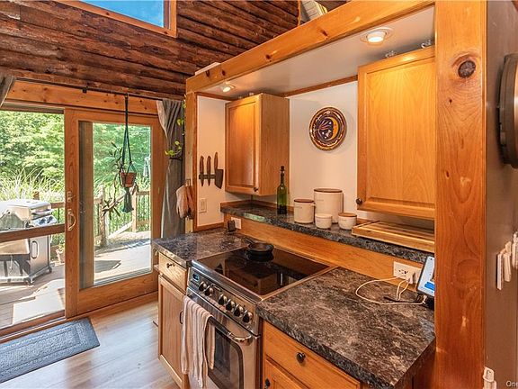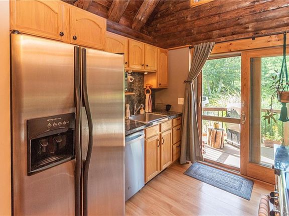 Young, custom built log home on almost 6 acres of gorgeousness. If you like buildings replaced by trees, and streets replaced by trails, then this getaway if for you. Wildlife, fruit trees and gardens await the new owner. Open floor plan, 3 bedroom, 2 bath home with vaulted ceilings. Recent updates include renovated bathroom, new sliding glass doors to the lovely deck with views of the large yard - perfect for stargazing. Additional updates include freshly painted exterior, insulated basement/crawl space, A/C unit which cools whole house, new dishwasher, washer & dryer and ceiling fan. A wonderful escape!!!