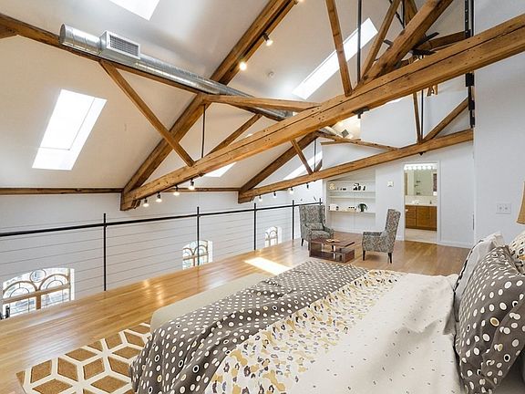 NICE PRICE ;TRI-level loft space, located in the Sanctuary Lofts Condominiums. Originally constructed in 1870 and then converted to loft condominiums in 2000, this is one of 17 units in a small elevator building. This uniquely customized space of 1941 SF, is an ideal creative environment. The kitchen features a commercial grade gas cook-top and an externally vented extractor hood. The kitchen forms a natural focal point for entertaining at home Second sleeping area ;Den on first floor ; 2nd level mezzanine, open to the space below, provides a separate living area + main bedroom suite. Full bathroom adjoins the 2nd level mezzanine space ; large jacuzzi tub in master bathroom; a private patio overlooking the Boston skyline;Deeded storage and a full covered parking space are included in the sale ; 5 MINUTE walking distance away for " under - construction" Green Line East Somerville Station. 31 minute WALK ( 1.5 miles) 9 minute BIKE to HarvardSq- Next door to RX Strength Training GYM.