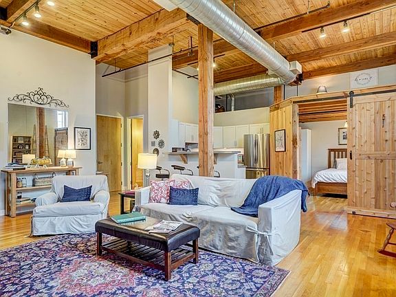 A STYLISH LOFT IN AN ENVIABLE LOCATION...FOR THOSE WHO APPRECIATE PRIVACY IN ARTFULLY RE-IMAGINED SURROUNDINGS! Ideally located close to vibrant Union Square, new T station and bike path, Sanctuary Lofts thoughtfully blends 1870's charm with modern amenities. Enjoy assigned off-street parking and enter through your private patio where youâll savor sunset views of downtown Boston. Guests will arrive by elevator to this light, bright second floor home where freshly painted interiors, hardwood floors and exposed 14-foot beam ceilings welcome them to chic industrial space. Easily create a work-from-home office and elegant living areas perfect for entertaining in this eminently versatile loft. The kitchen features polished concrete surfaces, deep soapstone sink and clever bar seating. Behind a custom sliding barn door youâll discover a serene master retreat featuring a fabulous ensuite bath with radiant heat. A SYMPHONY OF STYLE BLENDING OLD AND NEW AWAITS... A TRULY PRIVATE URBAN OASIS!