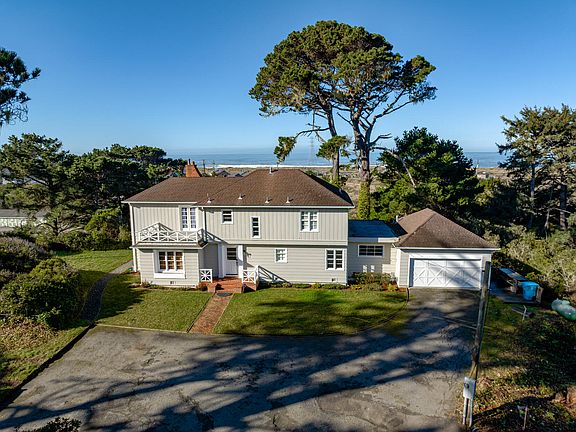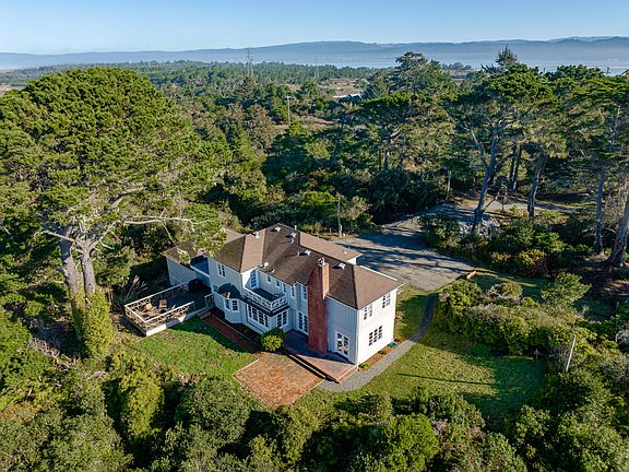 SPECTACULAR SAMOA HOME located down a private driveway in a wooded setting with panoramic and ocean views from almost every room. This beautiful 4 bedroom, 3 bath home has a large living room with fireplace, french doors leading to the ocean view back patio and lawn, redwood paneling and coffered ceilings. Separate den/study, family/game area, bedroom and full bath are all on the ground floor. Also a spacious remodeled custom kitchen with dual custom oven/cook top, double door stainless refrigerator, tile floors, quartz counter tops, farm sink and more ocean views! Breakfast nook plus formal dining. Upstairs are two more large bedrooms, full bath and a large primary suite with fireplace private bath and awesome views. Hardwood floors and lots of historic charm throughout this 1930's custom home. The .40 acre parcel offers lots of usable space for parking, activities, patio, deck and a nice private setting. You are close to town here and a short walk to the beach! This is a very unique Humboldt County property.