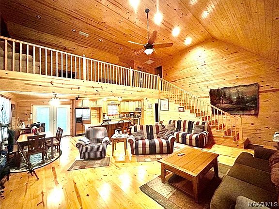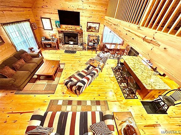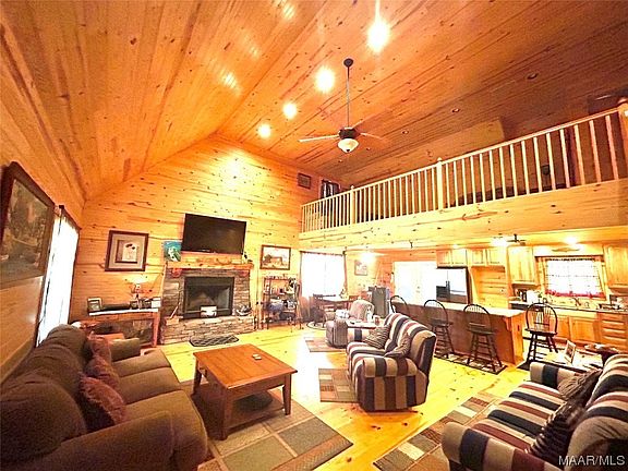 This property offers almost all you will ever need for your river home!!! There's 400+ feet of water frontage...YES, 400... and includes a BOAT HOUSE for two boats including the BOAT LIFTS and a FISHING DECK! There's a large front Porch and back Porch, both with views of Lake Dannelly. The water depth is 8+ feet, so it should service most sized boats. This striking home has Pine floors, ceilings, and walls and offers a wide open floor plan, with the downstairs featuring the Great Room and Stone Fireplace, and two of the three Bedrooms, a Bathroom, and Laundry Area. The Kitchen has Granite Counters and an eat-at Bar and the Dining Area sits in front of French Doors for that water view! Upstairs there's a Sleep Loft with sleeper included, another Bathroom, and the Master with double closets. Added features of the home: All furniture will be included, the insulation is sprayed foam, the crawl is sealed and has installed lighting, there are 2 Heat Pump AC units, all solid wood doors throughout, and Metal Roofing. Current taxes: $781 2023-08-03