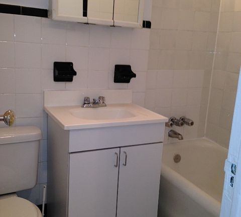 already renovated super spacious studio, the pics speak for themselves, ready right away, good credit, proof of income and fee for approval, tiled kitchen and bath, spacious closets, evening doorman, super, porters and laundry on site, transportation close, highways close as well, super quiet elevator building, no dogs allowed, indoor garage extra