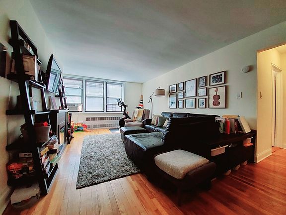 Look at this Stunning Apt Looks even better in person On Offer for occupancy for the first week of June is a renovated 2BRs/1 Bath apt in a well-kept apt building. The building has 2 elevators, a laundry room, garage parking, live in super, and an evening doorman. The apt features a large living room, a separate kitchen with full size appliances dishwasher included. The master bedroom is large enough to fit a king-size bed set with 2 large closets one walk-in. The second bedroom is smaller but can work well for a nursery or an additional 2nd bedroom. The bathroom is neat and clean with a tub & there are several closets throughout the apt. Wood floors in the rooms, heat & hot water, gas for cooking are included in the rent. Sorry, no dogs are allowed. NY guarantors accepted.