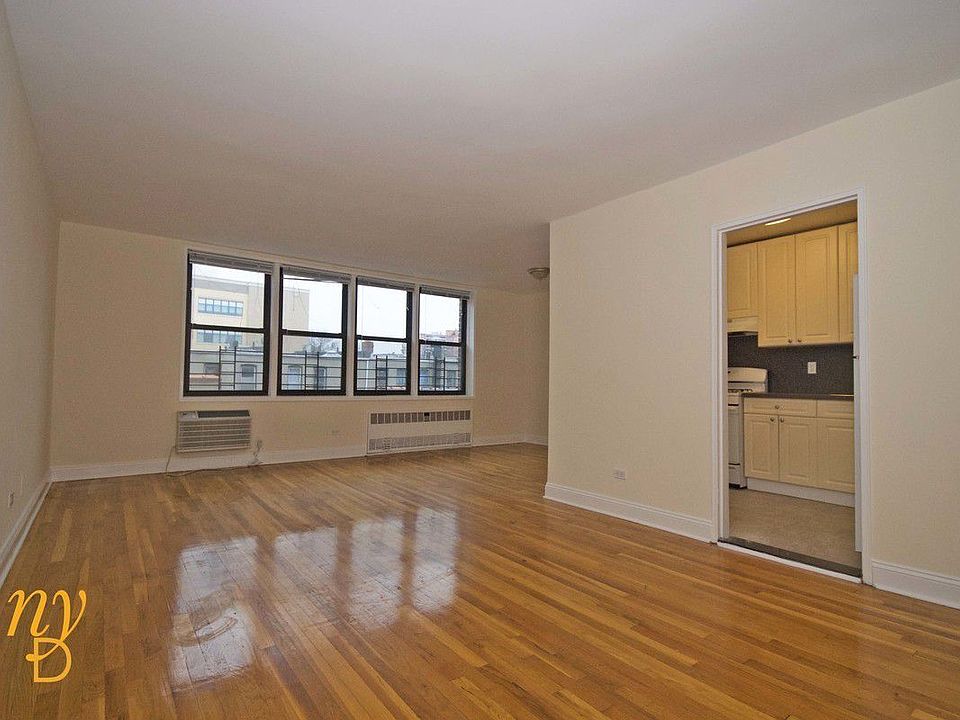 A TRUE GEM! On Offer for a March 1 occupancy is a bright & huge 1 bedroom apt. The apt features a large living-dining space that can accommodate most any size furniture. The kitchen is semi-open to a large alcove and is outfitted with full-size appliances and decent cabinet space. The bedroom is nestled on one side and can easily accommodate a king/queen bed set. There are plenty of built-in closets throughout the apt. There is 1 full bathroom with a tub. Laundry room in the building. There's a live-in super with an evening doorman. Parking space available for a fee of $225 plus tax per month. Available to be shown at short notice. NY guarantors allowed.