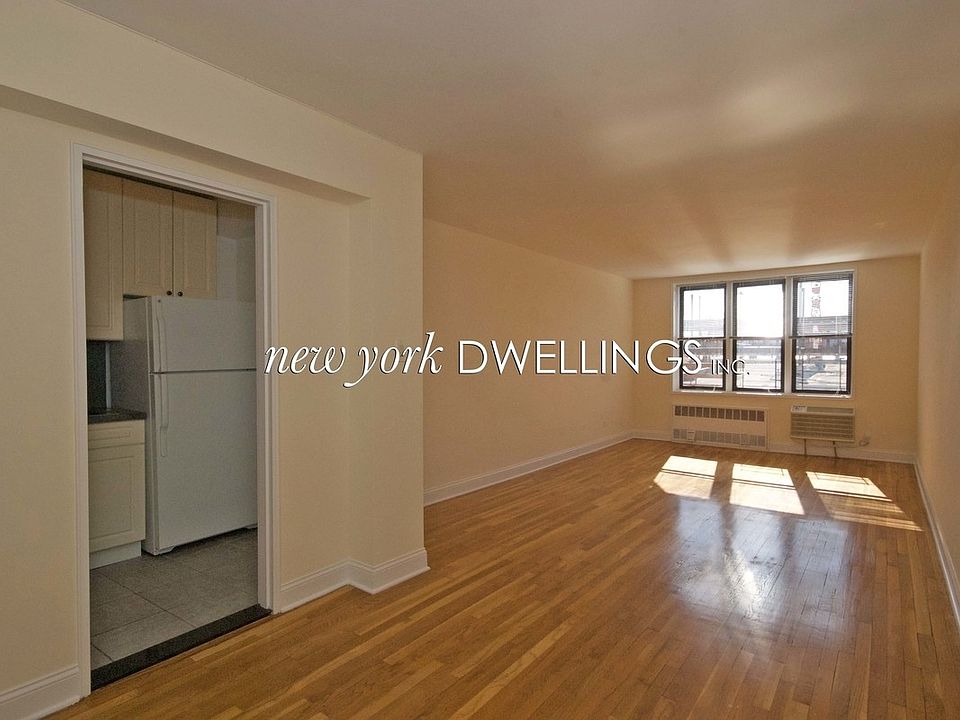 On offer for an immediate occupancy is a large & bright 1 bedroom apt in a doorman elevator building with laundry and parking garage. This apt features a large living-dining space with a separate work in kitchen. You can fit almost any size dining table alongside living room furniture. The bedroom can easily fit a king-size bed set. With 5 built-in closets, this apt is a great find for a single person/couple. The laundry room is on the ground floor in the building, garage parking available for $250 + tax(may be subject to waitlist). Heat, hot water, and cooking gas are included in the rent, hardwood floors are throughout. 1 or 2 cats allowed, sorry no dogs are allowed. NY State Guarantors accepted.