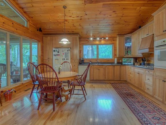 This lake home is at one of the widest points of Lake Nottely on a great lot! Gentle slope to the lake with a beautiful yard. Long range mountain views can be seen just beyond the lake. The 3 bedroom/2 bath house is immaculate. Hickory floors and cabinets along with tongue and groove walls make this cabin feel warm and inviting. The finished basement has a large game room, bedroom, and additional office. The large covered porch is amazing to enjoy the lake and mountain views. Poteete Creek boat ramp and campground are less than 100 yards away. Bose surround sound, hot tub hookup, wood stove in the basement, and wood burning fireplace on the main floor. One of a kind house with the best lake lot on Nottely. 07/22/17