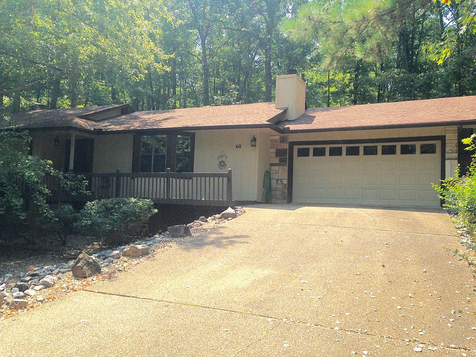 Well cared for ranch with only nature in your private backyard! Secluded wooded lot, huge great room with vaulted ceilings, stone gas log fireplace, large Arkansas room, updated bathrooms, new paint inside & out, front and back decks, 2 car garage, close to West gate amenities. Priced to sell - must see to appreciate! Call 915-8548 for details.