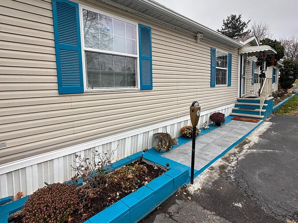 Welcome to your serene new home in Muhlenberg Township! This charming mobile home features striking blue shutters that beautifully contrast the exterior, providing a touch of color and character. The accessible steps leading up to your front door invite you into a world of comfort and convenience. Residing here means enjoying the benefits of a close-knit community and the charm of suburban living. Don't miss out on this affordable and appealing housing option. Make your dream of homeownership a reality today!
