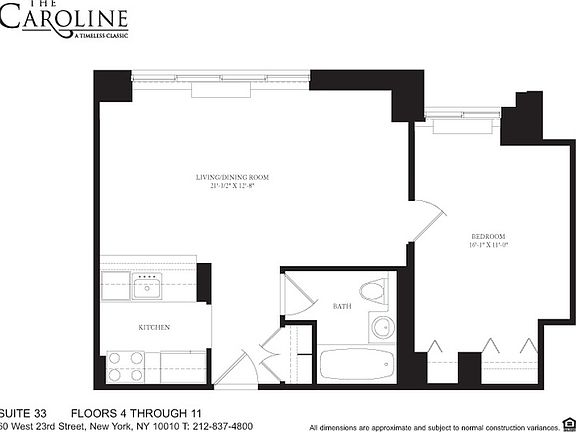 Our new on-site membership-based 40,000+ sq ft fitness facility, Life Time 23rd Street, has an indoor saltwater pool, over 90 classes per week taught by New York's top instructors, a world-class cedarwood sauna, eucalyptus steam room, and luxuries like premium toiletries and full towel service. The Caroline, designed by Richard Cook and Costas Kondylis, is a beautifully appointed, 22-story white-glove residence in close proximity to Madison Square Park, at the intersection of New York City's vibrant Chelsea and Flatiron neighborhoods. Each home features open living spaces with abundant closets, oversized windows, marble bathrooms, and generously laid out kitchens with full-sized stainless steel appliance packages, granite countertops & floors. Select residences feature 10-foot ceiling heights, walk-in closets, floor-to-ceiling windows, private terraces, washer/dryers, strip hardwood flooring, and NEST climate control systems. Extra care was put into soundproofing wall and floor insulation during construction. The building offers a superb amenity package that includes a 24-hour doorman, resident concierge, on-site valet for dry cleaning, tailor, a shoeshine station, tenant lounge, children's playroom, arcade, billiard parlor, private meeting facilities with outdoor space, 12,000 SF landscaped roof deck, a commercial sized laundry room with 50+ machines and an immaculate interior courtyard with formal European garden. Resident events range from live music and rooftop BBQs to Sunday brunch and varied events for kids, all complimentary to residents. Bikeroom, parking spaces, and storage cages are available for rent upon availability and request. Parking has secure elevator access directly to select residence floors. Electric vehicle charging is also available. Please ask about our partnership with Life Time. Photos and floor plans are representative and approximate, pricing subject to change