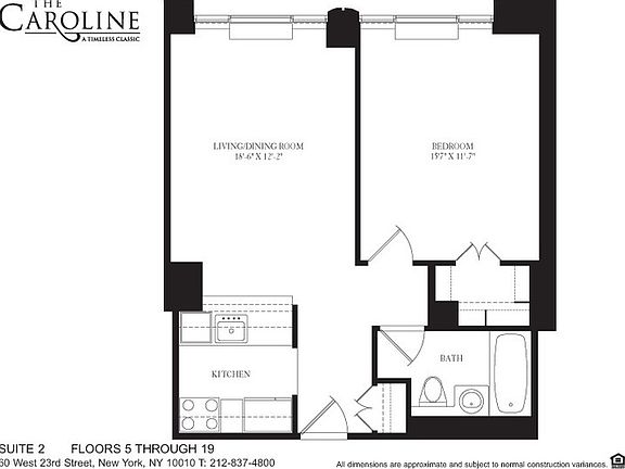 10th floor one bedroom with new strip floors and lovely North views now available. Our new on-site membership-based 40,000+ sq ft fitness facility, Life Time 23rd Street, has an indoor saltwater pool, over 90 classes per week taught by New York's top instructors, a world-class cedarwood sauna, eucalyptus steam room, and luxuries like premium toiletries and full towel service. The Caroline, designed by Richard Cook and Costas Kondylis, is a beautifully appointed, 22-story white-glove residence in close proximity to Madison Square Park, at the intersection of New York City's vibrant Chelsea and Flatiron neighborhoods. Each home features open living spaces with abundant closets, oversized windows, marble bathrooms, and generously laid out kitchens with full-sized stainless steel appliance packages, granite countertops & floors. Select residences feature 10-foot ceiling heights, walk-in closets, floor-to-ceiling windows, private terraces, washer/dryers, strip hardwood flooring, and NEST climate control systems. Extra care was put into soundproofing wall and floor insulation during construction. The building offers a superb amenity package that includes a 24-hour doorman, resident concierge, on-site valet for dry cleaning, tailor, a shoeshine station, tenant lounge, children's playroom, arcade, billiard parlor, private meeting facilities with outdoor space, 12,000 SF landscaped roof deck, a commercial sized laundry room with 50+ machines and an immaculate interior courtyard with formal European garden. Resident events range from live music and rooftop BBQs to Sunday brunch and varied events for kids, all complimentary to residents. Bike room, parking spaces, and storage cages are available for rent upon availability and request. Parking has secure elevator access directly to select residence floors. Electric vehicle charging is also available. Photos and floor plans are of a representative unit. Prices are subject to change.