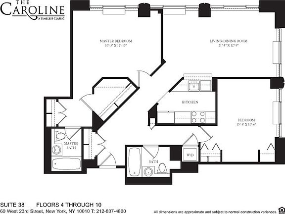 Now available, southwest facing corner unit at The Caroline - a beautifully appointed, white glove building located on 23rd and 6th, where Flatiron meets Chelsea. Enter this 10th floor apartment through its gracious entry foyer with abundant storage. On the right, is your first full bathroom, followed by the laundry closet, and first bedroom. Across from the double exposure living room is the pass through kitchen with its ample cabinet space and stainless steel appliances including a full-size gas range. The spacious master bedroom is south facing towards 22nd street, has an en suite bathroom with two large closets, one of which is an oversized walk-in. Our new on-site membership-based 40,000+ sq ft fitness facility, Life Time 23rd Street, has an indoor saltwater pool, over 90 classes per week taught by New York's top instructors, a world-class cedarwood sauna, eucalyptus steam room, and luxuries like premium toiletries and full towel service. The Caroline, designed by Richard Cook and Costas Kondylis, is a beautifully appointed, 22-story white-glove residence in close proximity to Madison Square Park, at the intersection of New York City's vibrant Chelsea and Flatiron neighborhoods. Each home features open living spaces with abundant closets, oversized windows, marble bathrooms, and generously laid out kitchens with full-sized stainless steel appliance packages, granite countertops & floors. Select residences feature 10-foot ceiling heights, walk-in closets, floor-to-ceiling windows, private terraces, washer/dryers, strip hardwood flooring, and NEST climate control systems. Extra care was put into soundproofing wall and floor insulation during construction. The building offers a superb amenity package that includes a 24-hour doorman, resident concierge, on-site valet for dry cleaning, tailor, a shoeshine station, tenant lounge, children's playroom, arcade, billiard parlor, private meeting facilities with outdoor space, 12,000 SF landscaped roof deck, a commercial sized laundry room with 50+ machines and an immaculate interior courtyard with formal European garden. Resident events range from live music and rooftop BBQs to Sunday brunch and varied events for kids, all complimentary to residents. Bike room, parking spaces, and storage cages are available for rent upon availability and request. Parking has secure elevator access directly to select residence floors. Electric vehicle charging is also available. Photos and floor plans are of a representative unit. Prices are subject to change. Smoking allowed:No