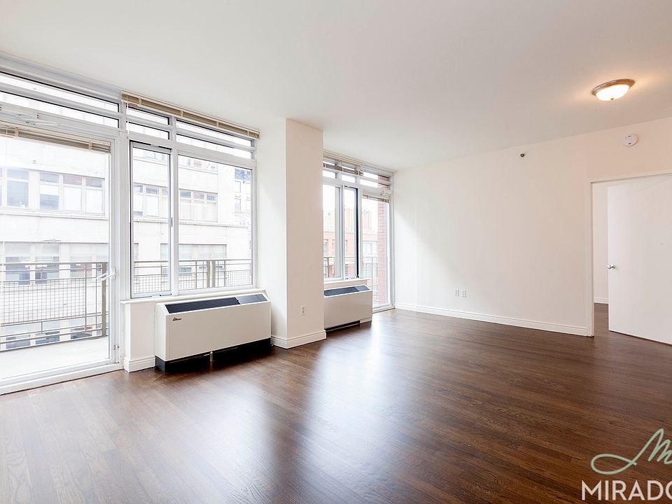 Spectacular new South facing 1 bedroom with private balcony in Chelsea's premier luxury building, The Caroline. Features include gorgeous dark strip hardwood floors, large dining alcove, an open plan kitchen with granite counter tops and stainless steel appliances, a 20'3" x 12'4" living room, excellent closet space, and a king sized bedroom. The Caroline is a smoke free and pet friendly building with a host of amenities including 24 hr doorman, children's play room, billiards room; tenant lounge with projection screen TV, bar, and free WiFi; games room, 24 hr laundry room, valet service; 20,000 sq ft landscaped roof deck & much more! Lessees also receive a complimentary passport membership to New York Health & Racquet Club, including the 44,000 sq ft on-site facility with 60' skylit saltwater pool, state-of-the-art cardio equipment, & 500+ classes per week. Unit under renovation - photos are of a comparable apartment in the building.