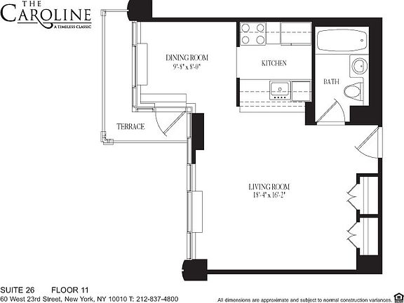 Spacious alcove studio with a private set back terrace, large living space and separate dining area now available at The Caroline! This beautifully appointed white glove building is located on 23rd and 6th, where Flatiron meets Chelsea. The apartment features a pass-through kitchen with ample cabinet space and stainless steel appliances including a full-size gas range, dishwasher and microwave. Strip hardwood floors throughout. Our new on-site membership-based 40,000+ sq ft fitness facility, Life Time 23rd Street, has an indoor saltwater pool, over 90 classes per week taught by New York's top instructors, a world-class cedarwood sauna, eucalyptus steam room, and luxuries like premium toiletries and full towel service. The Caroline, designed by Richard Cook and Costas Kondylis, is a beautifully appointed, 22-story white-glove residence in close proximity to Madison Square Park, at the intersection of New York City's vibrant Chelsea and Flatiron neighborhoods. Each home features open living spaces with abundant closets, oversized windows, marble bathrooms, and generously laid out kitchens with full-sized stainless steel appliance packages, granite countertops & floors. Select residences feature 10-foot ceiling heights, walk-in closets, floor-to-ceiling windows, private terraces, washer/dryers, strip hardwood flooring, and NEST climate control systems. Extra care was put into soundproofing wall and floor insulation during construction. The building offers a superb amenity package that includes a 24-hour doorman, resident concierge, on-site valet for dry cleaning, tailor, a shoeshine station, tenant lounge, children's playroom, arcade, billiard parlor, private meeting facilities with outdoor space, 12,000 SF landscaped roof deck, a commercial sized laundry room with 50+ machines and an immaculate interior courtyard with formal European garden. Resident events range from live music and rooftop BBQs to Sunday brunch and varied events for kids, all complimentary to residents. Bike room, parking spaces, and storage cages are available for rent upon availability and request. Parking has secure elevator access directly to select residence floors. Electric vehicle charging is also available. Photos and floor plans are of a representative unit. Prices are subject to change. Smoking allowed:No