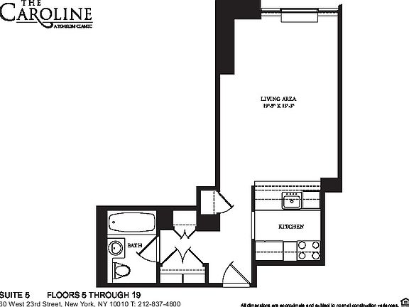 The Caroline is a beautifully appointed, 22 story 'white glove' residence located at 60 West 23rd Street in Chelsea. Since construction was completed in 2002 the building has cemented its reputation as one of the most prestigious rental buildings in New York City. All 431 apartments feature open living spaces with abundant closets, over sized windows, marble bathrooms, and open kitchens with stainless steel appliances, including dishwasher, microwave, and full-size fridge & freezer. Many units also have private outdoor space. The building offers a superb amenity package that includes a round the clock doorman, concierge, brand new tenants lounge, children's game room & 12,000 sq. ft. landscaped roof deck and courtyard with formal European garden. Listed rent is net effective, based on a gross rent of $3,000 and 1 Month Free Photos and floor plans are of a representative unit. Prices and incentives are subject to change.