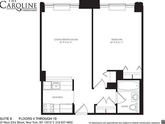Fantastic new 1 bedroom in Chelsea's best building, The Caroline! This bright & sunny apartment features aa 18'5" x 12'8" living room, solar shades, brand new strip hardwood floors, abundant closet space, a marble bathroom, and a fully equipped pass-thru kitchen with stainless steel appliances, including a dishwasher, microwave, and full-size fridge & freezer. Lessees receive a complimentary passport membership at the New York Health & Racquet Club, including the 44,000 sq.ft. on-site facility with 60' saltwater pool.