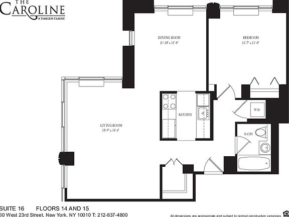 The Caroline is a beautifully appointed, 22 story 'white glove' residence located at 60 West 23rd Street in Chelsea. Since construction was completed in 2002 the building has cemented its reputation as one of the most prestigious rental buildings in New York City. The apartment homes feature open living spaces with abundant closets, over sized windows, marble bathrooms, and open kitchens with stainless steel appliances, including dishwasher, microwave, and full-size fridge & freezer. The building offers a superb amenity package that includes a round the clock doorman, concierge, brand new tenants lounge, children's game room & 12,000 sq. ft. landscaped roof deck and courtyard with formal European garden. Photos and floor plans are often of a representative unit. Prices are subject to change. Always check our website for the latest promo.