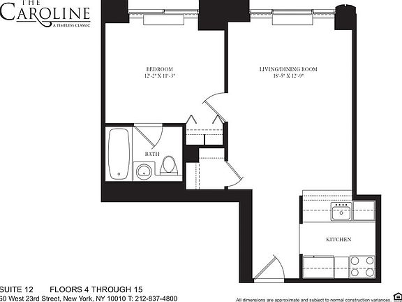 Spacious one bedroom home with Northern exposure at The Caroline. The unit features a large open living space, king-sized bedroom, pass-through kitchen with breakfast bar, granite counter tops and stainless steel appliances including double door refrigerator. Our new on-site membership-based 40,000+ sq ft fitness facility, Life Time 23rd Street, has an indoor saltwater pool, over 90 classes per week taught by New York's top instructors, a world-class cedarwood sauna, eucalyptus steam room, and luxuries like premium toiletries and full towel service. The Caroline, designed by Richard Cook and Costas Kondylis, is a beautifully appointed, 22-story white-glove residence in close proximity to Madison Square Park, at the intersection of New York City's vibrant Chelsea and Flatiron neighborhoods. Each home features open living spaces with abundant closets, oversized windows, marble bathrooms, and generously laid out kitchens with full-sized stainless steel appliance packages, granite countertops & floors. Select residences feature 10-foot ceiling heights, walk-in closets, floor-to-ceiling windows, private terraces, washer/dryers, strip hardwood flooring, and NEST climate control systems. Extra care was put into soundproofing wall and floor insulation during construction. The building offers a superb amenity package that includes a 24-hour doorman, resident concierge, on-site valet for dry cleaning, tailor, a shoeshine station, tenant lounge, children's playroom, arcade, billiard parlor, private meeting facilities with outdoor space, 12,000 SF landscaped roof deck, a commercial-sized laundry room with 50+ machines and an immaculate interior courtyard with formal European garden. Resident events range from live music and rooftop BBQs to Sunday brunch and varied events for kids, all complimentary to residents. Bike room, parking spaces, and storage cages are available for rent upon availability and request. Parking has secure elevator access directly to select residence floors. Electric vehicle charging is also available. Photos and floor plans are of a representative unit. Please ask about our current promo with LifeTime Fitness.