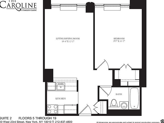 The Caroline is a beautifully appointed, 22 story 'white glove' residence located at 60 West 23rd Street in Chelsea. Since construction was completed in 2002 the building has cemented its reputation as one of the most prestigious rental buildings in New York City. The apartment homes feature open living spaces with abundant closets, over sized windows, marble bathrooms, and open kitchens with stainless steel appliances, including dishwasher, microwave, and full-size fridge & freezer. The building offers a superb amenity package that includes a round the clock doorman, concierge, brand new tenants lounge, children's game room & 12,000 sq. ft. landscaped roof deck and courtyard with formal European garden. Photos and floor plans are often of a representative unit. Prices are subject to change. Always check our website for the latest promo.