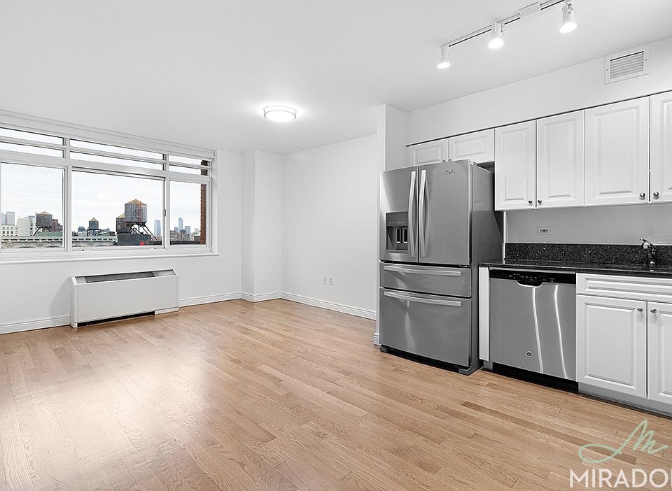 Studio apartment on the 19th floor of Chelsea's premier luxury doorman building, The Caroline, now available. This bright apartment features an open living space with over-sized windows and unobstructed south-facing vistas, a marble bathroom, Oak Stripped hardwood floors, and an open kitchen with stainless steel appliances, including a dishwasher, microwave, and full-size fridge & freezer. Our new on-site membership-based 40,000+ sq ft fitness facility, Life Time 23rd Street, has an indoor saltwater pool, over 90 classes per week taught by New York's top instructors, a world-class cedarwood sauna, eucalyptus steam room, and luxuries like premium toiletries and full towel service. The Caroline, designed by Richard Cook and Costas Kondylis, is a beautifully appointed, 22-story white-glove residence in close proximity to Madison Square Park, at the intersection of New York City's vibrant Chelsea and Flatiron neighborhoods. Each home features open living spaces with abundant closets, oversized windows, marble bathrooms, and generously laid out kitchens with full-sized stainless steel appliance packages, granite countertops & floors. Select residences feature 10-foot ceiling heights, walk-in closets, floor-to-ceiling windows, private terraces, washer/dryers, strip hardwood flooring, and NEST climate control systems. Extra care was put into soundproofing wall and floor insulation during construction. The building offers a superb amenity package that includes a 24-hour doorman, resident concierge, on-site valet for dry cleaning, tailor, a shoeshine station, tenant lounge, children's playroom, arcade, billiard parlor, private meeting facilities with outdoor space, 12,000 SF landscaped roof deck, a commercial sized laundry room with 50+ machines and an immaculate interior courtyard with formal European garden. Resident events range from live music and rooftop BBQs to Sunday brunch and varied events for kids, all complimentary to residents. Bikeroom, parking spaces, and storage cages are available for rent upon availability and request. Parking has secure elevator access directly to select residence floors. Electric vehicle charging is also available. Please ask about our partnership with Life Time. Photos and floor plans are representative and approximate, pricing subject to change Fees: $20 non-refundable application fee per person $150 pet fee per approved animal 1st months rent 1 month's security Lock out fees- $50 after 8 pm -Bike fees- $30 per month -Storage fees- $150 per month -Event space cleaning fee: $150 plus tax per event.