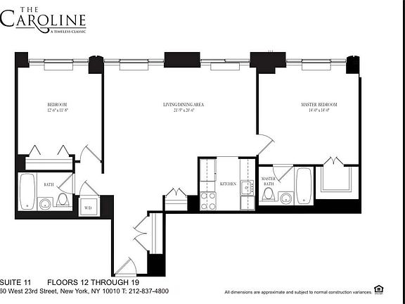 The Caroline is a beautifully appointed, 22 story 'white glove' residence located at 60 West 23rd Street in Chelsea. Since construction was completed in 2002 the building has cemented its reputation as one of the most prestigious rental buildings in New York City. All 431 apartments feature open living spaces with abundant closets, over sized windows, marble bathrooms, and open kitchens with stainless steel appliances, including dishwasher, microwave, and full-size fridge & freezer. Many units also have private outdoor space. The building offers a superb amenity package that includes a round the clock doorman, concierge, brand new tenants lounge, children's game room & 12,000 sq. ft. landscaped roof deck and courtyard with formal European garden. Photos and floor plans are of a representative unit. Prices and incentives are subject to change.