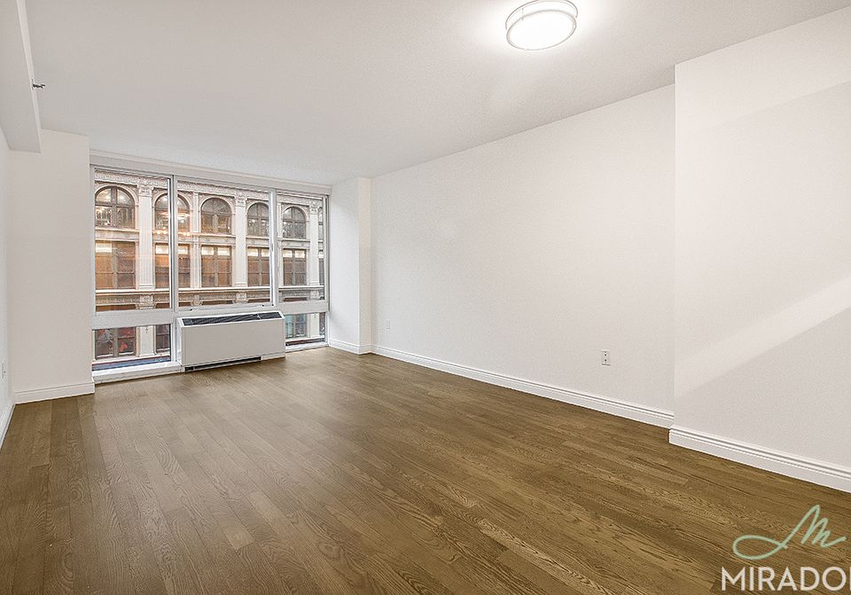 Beautiful one bedroom residence with Western exposure at The Caroline. The unit features a spacious living room, king-sized bedroom, and pass-thru kitchen with granite counter tops and stainless steel appliances. Our new on-site membership-based 40,000+ sq ft fitness facility, Life Time 23rd Street, has an indoor saltwater pool, over 90 classes per week taught by New York's top instructors, a world-class cedarwood sauna, eucalyptus steam room, and luxuries like premium toiletries and full towel service. The Caroline, designed by Richard Cook and Costas Kondylis, is a beautifully appointed, 22-story white-glove residence in close proximity to Madison Square Park, at the intersection of New York City's vibrant Chelsea and Flatiron neighborhoods. Each home features open living spaces with abundant closets, oversized windows, marble bathrooms, and generously laid out kitchens with full-sized stainless steel appliance packages, granite countertops & floors. Select residences feature 10-foot ceiling heights, walk-in closets, floor-to-ceiling windows, private terraces, washer/dryers, strip hardwood flooring, and NEST climate control systems. Extra care was put into soundproofing wall and floor insulation during construction. The building offers a superb amenity package that includes a 24-hour doorman, resident concierge, on-site valet for dry cleaning, tailor, a shoeshine station, tenant lounge, children's playroom, arcade, billiard parlor, private meeting facilities with outdoor space, 12,000 SF landscaped roof deck, a commercial sized laundry room with 50+ machines and an immaculate interior courtyard with formal European garden. Resident events range from live music and rooftop BBQs to Sunday brunch and varied events for kids, all complimentary to residents. Bikeroom, parking spaces, and storage cages are available for rent upon availability and request. Parking has secure elevator access directly to select residence floors. Electric vehicle charging is also available. Photos and floorplans are representative and approximate, pricing subject to change