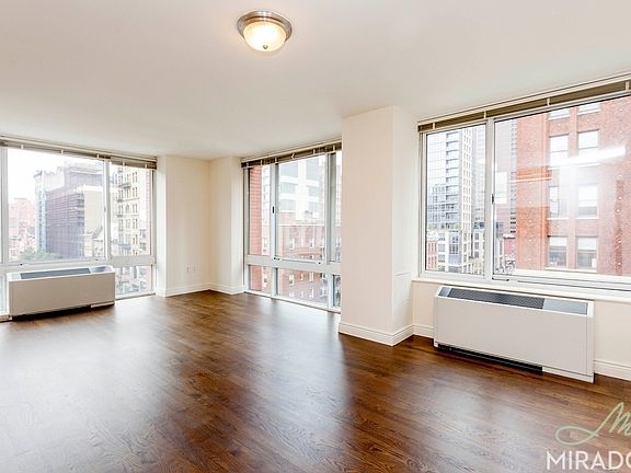 Ultra rare 2 bedroom, 2 bathroom corner apartment in Chelsea's finest luxury doorman building, The Caroline. This exceptional unit has a 21'4" x 12'9" living room, abundant closets (including walk-in in the master suite), lovely strip hardwood floors, over sized windows galore, and a fully equipped kitchen with stainless steel appliances, including dishwasher & microwave oven.