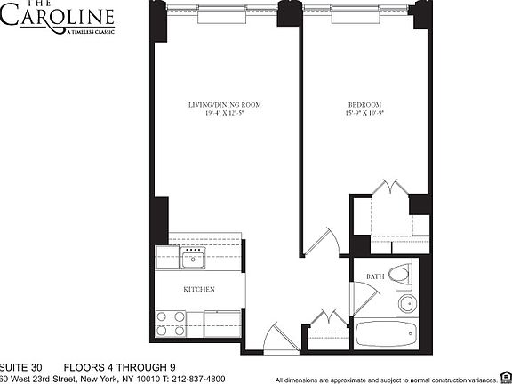 Large 1 bedroom apartment with western exposure. The Caroline is a beautifully appointed, 22-story white glove residence located at 60 West 23rd Street in Chelsea. Since construction was completed in 2002 the building has cemented its reputation as one of the most prestigious rental buildings in New York City. All 431 apartments feature open living spaces with abundant closets, over sized windows, marble bathrooms, and open kitchens with stainless steel appliances, including dishwasher, microwave, and full-size refrigerator and freezer. Many units also have a private outdoor space. The building offers a superb amenity package that includes a 24-hour doorman, concierge, tenants lounge, children's game room & 12,000 sq. ft. landscaped roof deck and courtyard with formal European garden. Listed rent is net effective, based on a gross rent of $3,420 and 1 Month Free Photos and floor plans are of a representative unit. Prices and incentives are subject to change.