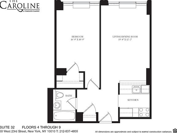 Large one bedroom apartment with a walk-in closet at The Caroline. The unit features a Nest programmable thermostat, beautiful dark strip hardwood floors, a fully equipped kitchen with granite counter tops, breakfast bar and stainless steel appliances including a side by side refrigerator with water dispenser, a large living room, and a marble bathroom. Our new on-site membership-based 10,000+ sq ft fitness facility, Life Time 23rd Street, has an indoor saltwater pool, over 90 classes per week taught by New York's top instructors, a world-class cedarwood sauna, eucalyptus steam room, and luxuries like premium toiletries and full towel service. The Caroline, designed by Richard Cook and Costas Kondylis, is a beautifully appointed, 22-story white-glove residence in close proximity to Madison Square Park, at the intersection of New York City's vibrant Chelsea and Flatiron neighborhoods. Each home features open living spaces with abundant closets, oversized windows, marble bathrooms, and generously laid out kitchens with full-sized stainless steel appliance packages, granite countertops & floors. Select residences feature 10-foot ceiling heights, walk-in closets, floor-to-ceiling windows, private terraces, washer/dryers, strip hardwood flooring, and NEST climate control systems. Extra care was put into soundproofing wall and floor insulation during construction. The building offers a superb amenity package that includes a 24-hour doorman, resident concierge, on-site valet for dry cleaning, tailor, a shoeshine station, tenant lounge, children's playroom, arcade, billiard parlor, private meeting facilities with outdoor space, 12,000 SF landscaped roof deck, a commercial-sized laundry room with 50+ machines and an immaculate interior courtyard with formal European garden. Resident events range from live music and rooftop BBQs to Sunday brunch and varied events for kids, all complimentary to residents. Bike room, parking spaces, and storage cages are available for rent upon availability and request. Parking has secure elevator access directly to select residence floors. Electric vehicle charging is also available. Photos and floor plans are of a representative unit. Please ask about our current promo with LifeTime Fitness.