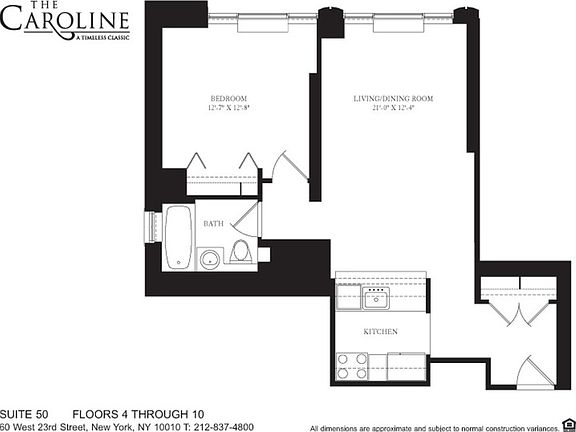 Our new on-site membership-based 40,000+ sq ft fitness facility, Life Time 23rd Street, has an indoor saltwater pool, over 90 classes per week taught by New York's top instructors, a world-class cedarwood sauna, eucalyptus steam room, and luxuries like premium toiletries and full towel service. The Caroline, designed by Richard Cook and Costas Kondylis, is a beautifully appointed, 22-story white-glove residence in close proximity to Madison Square Park, at the intersection of New York City's vibrant Chelsea and Flatiron neighborhoods. Each home features open living spaces with abundant closets, oversized windows, marble bathrooms, and generously laid out kitchens with full-sized stainless steel appliance packages, granite countertops & floors. Select residences feature 10-foot ceiling heights, walk-in closets, floor-to-ceiling windows, private terraces, washer/dryers, strip hardwood flooring, and NEST climate control systems. Extra care was put into soundproofing wall and floor insulation during construction. The building offers a superb amenity package that includes a 24-hour doorman, resident concierge, on-site valet for dry cleaning, tailor, a shoeshine station, tenant lounge, children's playroom, arcade, billiard parlor, private meeting facilities with outdoor space, 12,000 SF landscaped roof deck, a commercial sized laundry room with 50+ machines and an immaculate interior courtyard with formal European garden. Resident events range from live music and rooftop BBQs to Sunday brunch and varied events for kids, all complimentary to residents. Bikeroom, parking spaces, and storage cages are available for rent upon availability and request. Parking has secure elevator access directly to select residence floors. Electric vehicle charging is also available. Please ask about our partnership with Life Time. Photos and floor plans are representative and approximate, pricing subject to change $20 non-refundable application fee per person $150 pet fee per year per approved animal 1st months rent 1 month's security Lock out fees- $50 after 8 pm -Bike fees- $30 per month -Storage fees- $150 per month -Event space cleaning fee: $150 plus tax per event.