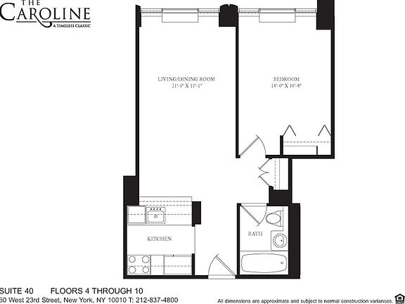 Wonderful new South facing 1 bedroom in Chelsea's best building, The Caroline. The unit features a fully equipped kitchen with granite counter tops and stainless steel appliances , a large living room, queen sized bedroom and a marble bathroom. The Caroline is a beautifully appointed, 22 story white glove residence located at 60 West 23rd Street in Chelsea. Since construction was completed in 2002 the building has cemented its reputation as one of the most prestigious rental buildings in New York City. All 431 apartments feature open living spaces with abundant closets, over sized windows, marble bathrooms, and open kitchens with stainless steel appliances, including dishwasher, microwave, and full-size fridge & freezer. Many units also have private outdoor space. The building offers a superb amenity package that includes a round the clock doorman, concierge, brand new tenants lounge, childrens game room & 12,000 sq. ft. landscaped roof deck and courtyard with formal European garden. The building is attached to the New York Health & Racquet Club, of which there is a 44,000 sq ft one on site with a saltwater pool, state-of-the-art equipment, 500 classes per week, and much more. *Net rent advertised reflects 1 month free. Photos and floor plans are of a representative unit. Prices and incentives are subject to change.