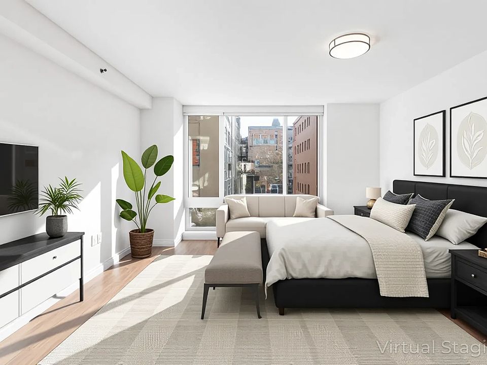 South-facing studio home at The Caroline. Unit highlights include a large open living space, a kitchen with granite countertops, and stainless steel appliances, including a double-door refrigerator. Our new on-site membership-based 40,000+ sq ft fitness facility, Life Time 23rd Street, has an indoor saltwater pool, over 90 classes per week taught by New York's top instructors, a world-class cedarwood sauna, eucalyptus steam room, and luxuries like premium toiletries and full towel service. The Caroline, designed by Richard Cook and Costas Kondylis, is a beautifully appointed, 22-story white-glove residence in close proximity to Madison Square Park, at the intersection of New York City's vibrant Chelsea and Flatiron neighborhoods. Each home features open living spaces with abundant closets, oversized windows, marble bathrooms, and generously laid out kitchens with full-sized stainless steel appliance packages, granite countertops & floors. Select residences feature 10-foot ceiling heights, walk-in closets, floor-to-ceiling windows, private terraces, washer/dryers, strip hardwood flooring, and NEST climate control systems. Extra care was put into soundproofing wall and floor insulation during construction. The building offers a superb amenity package that includes a 24-hour doorman, resident concierge, on-site valet for dry cleaning, tailor, a shoeshine station, tenant lounge, children's playroom, arcade, billiard parlor, private meeting facilities with outdoor space, 12,000 SF landscaped roof deck, a commercial-sized laundry room with 50+ machines and an immaculate interior courtyard with formal European garden. Resident events range from live music and rooftop BBQs to Sunday brunch and varied events for kids, all complimentary to residents. Bike room, parking spaces, and storage cages are available for rent upon availability and request. Parking has secure elevator access directly to select residence floors. Electric vehicle charging is also available. Photos and floor plans are of a representative unit. Please ask about our current partnership with LifeTime Fitness. Photos and floor plans are representative and approximate, pricing subject to change