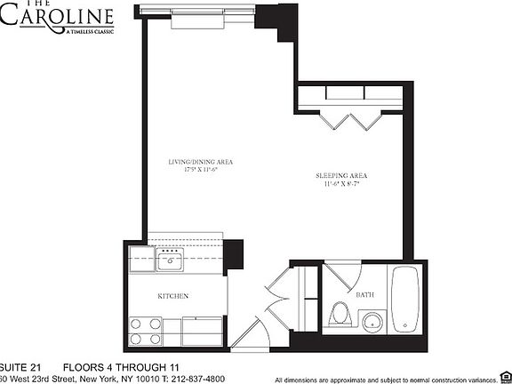 Outstanding alcove studio with new light strip hard wood flooring and separate kitchen, complete w/ breakfast bar. Our new on-site membership-based 10,000+ sq ft fitness facility, Life Time 23rd Street, has an indoor saltwater pool, over 90 classes per week taught by New York's top instructors, a world-class cedarwood sauna, eucalyptus steam room, and luxuries like premium toiletries and full towel service. The Caroline, designed by Richard Cook and Costas Kondylis, is a beautifully appointed, 22-story white-glove residence in close proximity to Madison Square Park, at the intersection of New York City's vibrant Chelsea and Flatiron neighborhoods. Each home features open living spaces with abundant closets, oversized windows, marble bathrooms, and generously laid out kitchens with full-sized stainless steel appliance packages, granite countertops & floors. Select residences feature 10-foot ceiling heights, walk-in closets, floor-to-ceiling windows, private terraces, washer/dryers, strip hardwood flooring, and NEST climate control systems. Extra care was put into soundproofing wall and floor insulation during construction. The building offers a superb amenity package that includes a 24-hour doorman, resident concierge, on-site valet for dry cleaning, tailor, a shoeshine station, tenant lounge, children's playroom, arcade, billiard parlor, private meeting facilities with outdoor space, 12,000 SF landscaped roof deck, a commercial sized laundry room with 50+ machines and an immaculate interior courtyard with formal European garden. Resident events range from live music and rooftop BBQs to Sunday brunch and varied events for kids, all complimentary to residents. Bike room, parking spaces, and storage cages are available for rent upon availability and request. Parking has secure elevator access directly to select residence floors. Electric vehicle charging is also available. Photos and floor plans are of a representative unit. Please ask about our current deal with LifeTime Fitness.