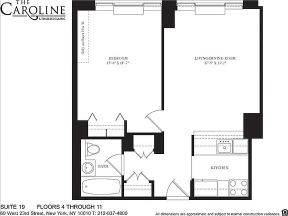 Our new on-site membership-based 40,000+ sq ft fitness facility, Life Time 23rd Street, has an indoor saltwater pool, over 90 classes per week taught by New York's top instructors, a world-class cedarwood sauna, eucalyptus steam room, and luxuries like premium toiletries and full towel service. The Caroline, designed by Richard Cook and Costas Kondylis, is a beautifully appointed, 22-story white-glove residence in close proximity to Madison Square Park, at the intersection of New York City's vibrant Chelsea and Flatiron neighborhoods. Each home features open living spaces with abundant closets, oversized windows, marble bathrooms, and generously laid out kitchens with full-sized stainless steel appliance packages, granite countertops & floors. Select residences feature 10-foot ceiling heights, walk-in closets, floor-to-ceiling windows, private terraces, washer/dryers, strip hardwood flooring, and NEST climate control systems. Extra care was put into soundproofing wall and floor insulation during construction. The building offers a superb amenity package that includes a 24-hour doorman, resident concierge, on-site valet for dry cleaning, tailor, a shoeshine station, tenant lounge, children's playroom, arcade, billiard parlor, private meeting facilities with outdoor space, 12,000 SF landscaped roof deck, a commercial sized laundry room with 50+ machines and an immaculate interior courtyard with formal European garden. Resident events range from live music and rooftop BBQs to Sunday brunch and varied events for kids, all complimentary to residents. Bikeroom, parking spaces, and storage cages are available for rent upon availability and request. Parking has secure elevator access directly to select residence floors. Electric vehicle charging is also available. Please ask about our partnership with Life Time. Photos and floor plans are representative and approximate, pricing subject to change