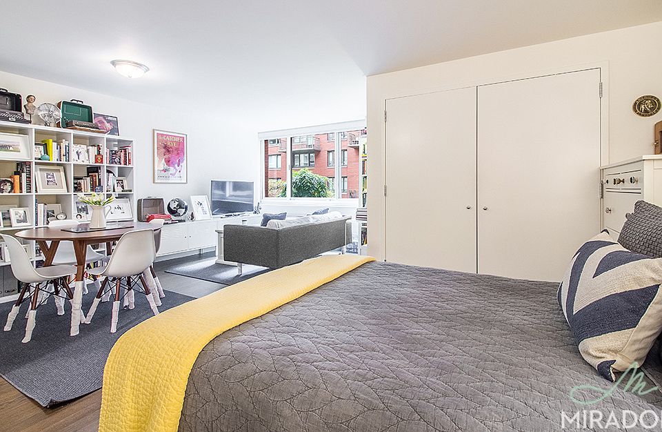 Rare alcove studio now available at The Caroline. Our new on-site membership-based 40,000+ sq ft fitness facility, Life Time 23rd Street, has an indoor saltwater pool, over 90 classes per week taught by New York's top instructors, a world-class cedarwood sauna, eucalyptus steam room, and luxuries like premium toiletries and full towel service. The Caroline, designed by Richard Cook and Costas Kondylis, is a beautifully appointed, 22-story white-glove residence in close proximity to Madison Square Park, at the intersection of New York City's vibrant Chelsea and Flatiron neighborhoods. Each home features open living spaces with abundant closets, oversized windows, marble bathrooms, and generously laid out kitchens with full-sized stainless steel appliance packages, granite countertops & floors. Select residences feature 10-foot ceiling heights, walk-in closets, floor-to-ceiling windows, private terraces, washer/dryers, strip hardwood flooring, and NEST climate control systems. Extra care was put into soundproofing wall and floor insulation during construction. The building offers a superb amenity package that includes a 24-hour doorman, resident concierge, on-site valet for dry cleaning, tailor, a shoeshine station, tenant lounge, children's playroom, arcade, billiard parlor, private meeting facilities with outdoor space, 12,000 SF landscaped roof deck, a commercial sized laundry room with 50+ machines and an immaculate interior courtyard with formal European garden. Resident events range from live music and rooftop BBQs to Sunday brunch and varied events for kids, all complimentary to residents. Bikeroom, parking spaces, and storage cages are available for rent upon availability and request. Parking has secure elevator access directly to select residence floors. Electric vehicle charging is also available. Please ask about our partnership with Life Time. Photos and floor plans are representative and approximate, pricing subject to change