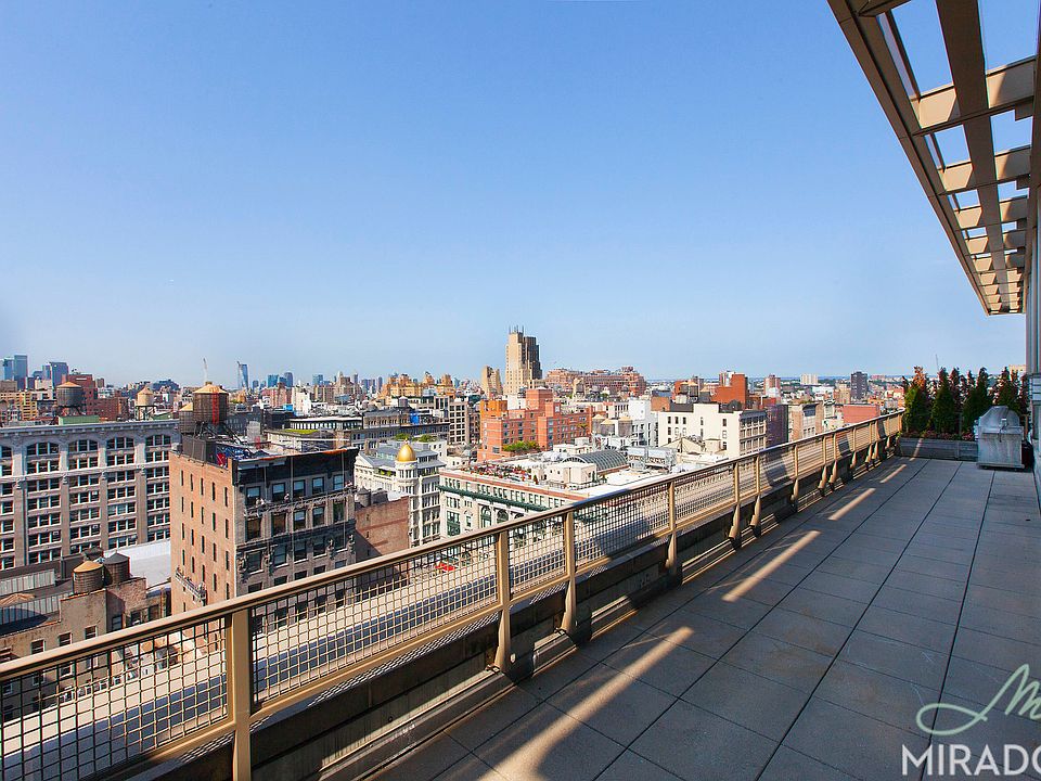 Rare penthouse residence at The Caroline, the finest full service building in Chelsea. This huge sun-splashed duplex boasts 100 feet of South facing floor-to-ceiling windows as well as breathtaking city views from your 22nd floor private terrace. Other features include a gorgeous windowed kitchen with Ubatuba granite counters, Viking range & Subzero refrigerator; Brazilian cherry wood floors with mahogany inlaid borders; crown moldings & solar shades, and an amazing amount of closet & storage space. The living room measures 19' 2" x 19', plus there's a 13 6 x 11 2 formal dining room and a wood burning fireplace. 19' x 12' 2" master suite and 18' x 11' 2" second bedroom, both with ensuite bathrooms. Amenities at The Caroline include: 24 hr Doorman - Children's Play Room - Billiards Room - Tenant Lounge with projection screen TV, bar, and free WiFi - Games Room - 24 hr Laundry Room (50 machines) - Valet Service - 20,000 sq.ft. Landscaped Roof Deck Lessees also receive a complimentary passport membership at the New York Health & Racquet Club, including the 44,000 sq.ft. on-site facility with 60' skylit saltwater pool, state-of-the-art cardio equipment, 500 classes per week, and much more!