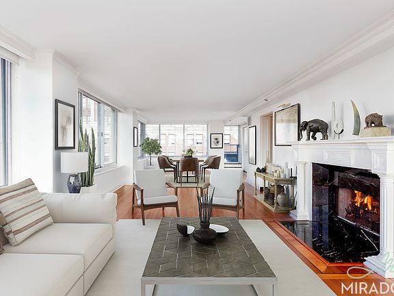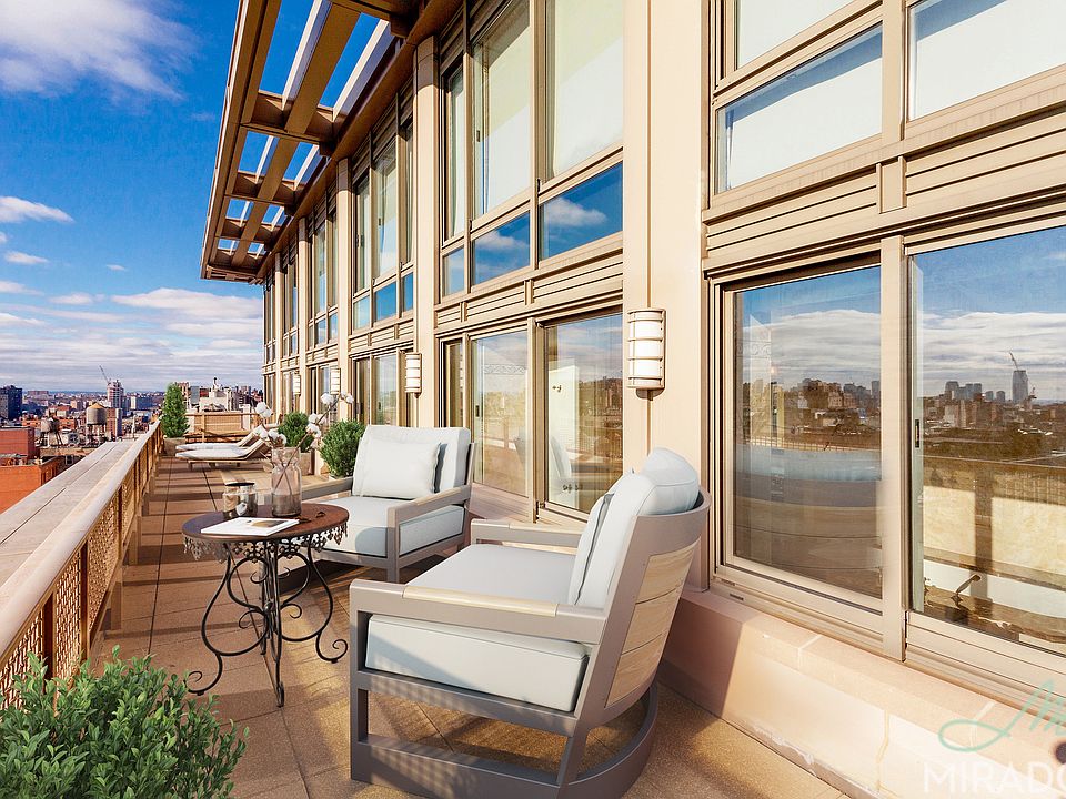 Fabulous new penthouse residence at Chelseas premier rental building, The Caroline. Over 2,150 sqft of interior space, plus 2 private wraparound terraces amounting to another 1,000 sqft. The 43 x 17 6 living room features a beautiful gas fireplace with marble hearth and carved wood mantle, full dining area and stunning cityscape views. Separate chefs kitchen with granite counters and marble floor, Viking range, Sub-Zero refrigerator & wine cooler, & Miele dishwasher. 22 x 17 master bedroom with gas fireplace & 21 x 10 master bath with floor-to-ceiling window, jacuzzi, frameless glass shower, & a windowed dressing area. King sized second bedroom with en suite spa bath. Powder room for guests, plus a washer and dryer. The building features include: - 24 hr Doorman - Children's Play Room - Billiards Room - Tenant Lounge with projection screen TV, bar, and free WiFi - Games Room - 24 hr Laundry Room (50 machines) - Valet Service - 20,000 sq ft Landscaped Roof Deck Tenants also receive a complimentary passport membership at the New York Health & Racquet Club, including the 44,000 sq ft on site facility with saltwater pool, state-of-the-art cardio equipment, 500 classes per week, and much more.
