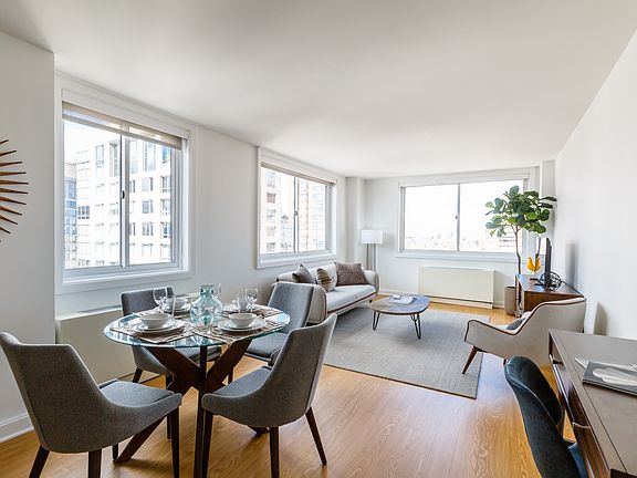 Price shown is Base Rent. Residents are required to pay: At Application: Application Fee ($20.00/applicant, nonrefundable); At Move-in: Security Deposit (Refundable) (100%/unit); Monthly: Electric-3rd Party (usage-based); Community Amenity Fee ($55.0-$75.0); Renters Liability Insurance-3rd Party (varies). Please visit the property website for a full list of all optional and situational fees. Floor plans are artist's rendering. All dimensions are approximate. Actual product and specifications may vary in dimension or detail. Not all features are available in every rental home. Please see a representative for details. Two Lincoln Square is located in the heart of Lincoln Square and offers a selection of luxury one- and two-bedroom rental apartment homes. We are minutes from Central Park and have direct access to the cultural center of Lincoln Center and all that the Upper West Side has to offer.